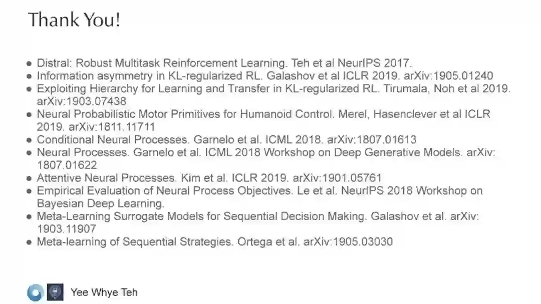 【导读】元学习和强化学习是当下机器学习研究的热点。DeepMind与牛津大学教授Yee Whye Teh在人工智能顶会UAI2019给了关于《元学习与强化学习的概率视角》的报告,讲述概率建模工具在元学习与强化学习方面解决数据效率的作用,是了解最新元学习与强化学习很好资料。