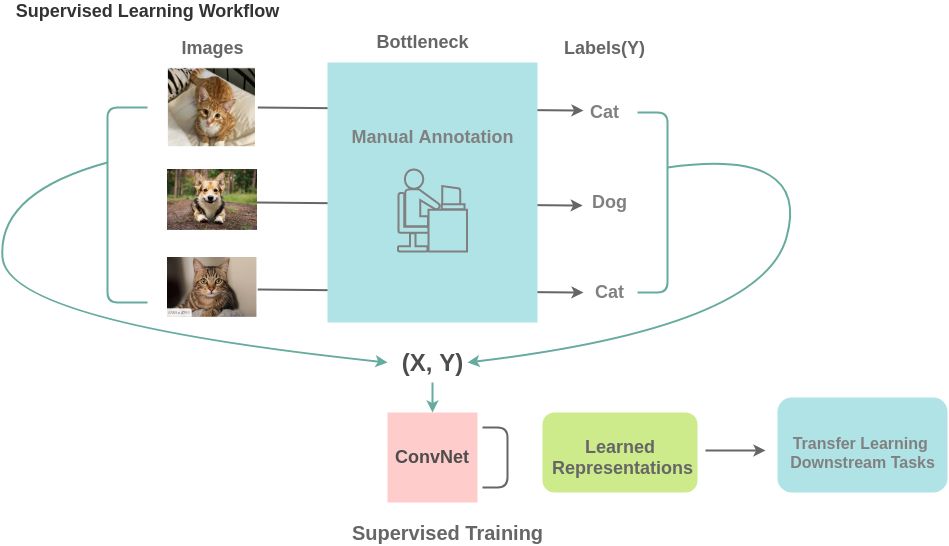 为了使用监督学习,我们需要足够的标记数据。为了获得这些信息,人工标注器需要手工标记数据(图像/文本),这是一个既耗时又昂贵的过程。还有一些领域,比如医疗领域,获取足够的数据本身就是一个挑战。