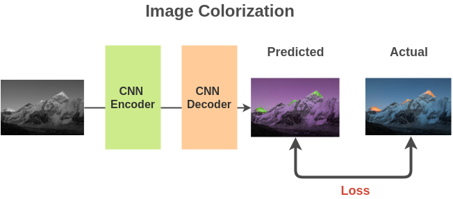 我们可以使用一个基于全卷积神经网络的编译码器结构来计算预测和实际彩色图像之间的L2损失。