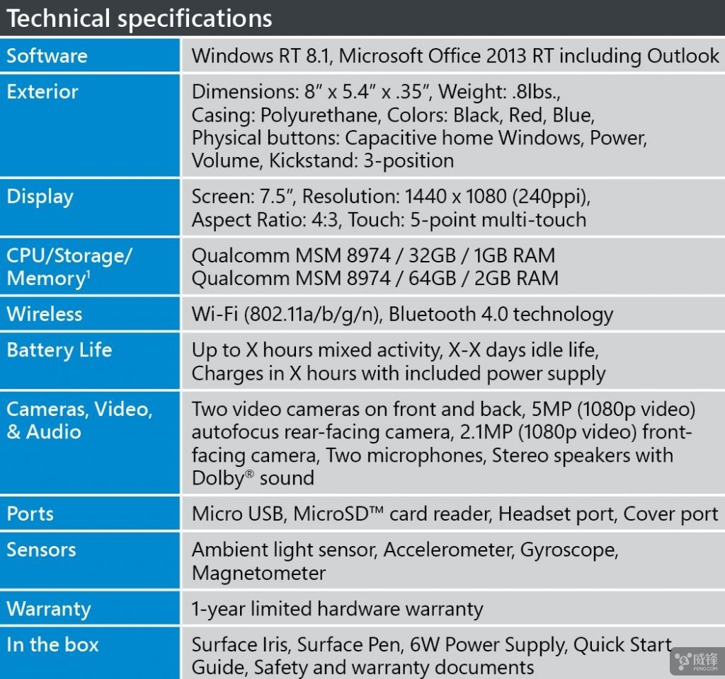 从处理器判断系统,相信大家已经倍感失望,而 Surface Mini 实际最初就是基于 Windows RT 8.1 开发的,但这一系统已经被证实为最失败的 Windows 系统,由于只能运行 Windows Store 商店的应用程序,很多人对它毫无兴趣。微软没有在说明书中提及续航时间,既然目标是学生,超过 8 小时的续航应该是最基本的。