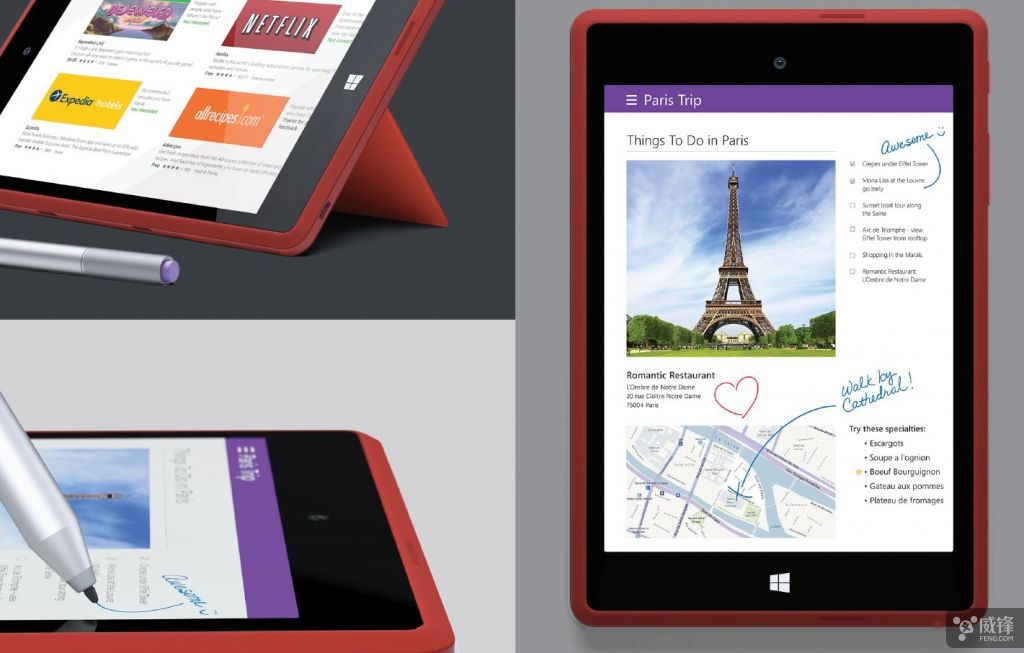 泄露的消息显示,Surface Mini 平板电脑的设计并没有什么不同寻常之处,集成有背部支架,与市面上其他 Surface 机型一样,只不过体积更小。因此,Surface Mini 的主要目标是那些希望通过便携设备来取代笔记本电脑的学生,并配有 Surface Pen 手写笔支持,设有常见的 USB 接口、耳机插孔和前置摄像头,还提供 MicroSD 卡读卡器。