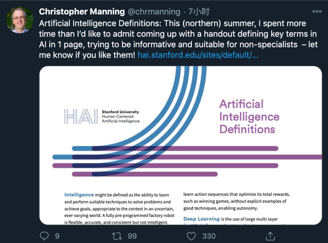 斯坦福教授 Christopher Manning 用一页纸的篇幅介绍 AI 领域的核心概念。