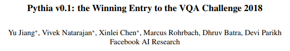 Pythia v0.1 the Winning Entry to the VQA Challenge 2018(arxiv'18,Facebook AI Research)
