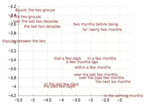 在介绍神经语言模型前,简述下标准方法,其是基于统计的语言模型,该模型没有使用分布式特征表示。而是基于统计简短符号序列出现的频率增长到N(N-grams,N元文法)。可能的N-grams的数字接近于VN,其中V是词汇表的大小,考虑到文本内容包含成千上万个单词,所以需要一个非常大的语料库。N-grams将每个单词看成一个原子单元,因此不能在语义相关的单词序列中一概而论,然而神经网络语言模型可以,是因为他们关联每个词与真是特征值的向量,并且在向量空间中语义相关的词彼此靠近(图4)。