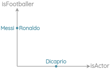 也许我们可以做得更好。我们知道Ronaldo和Messi是足球运动员,而Dicaprio是演员。让我们使用我们的世界知识并创建手动特征来更好地表示这些单词。