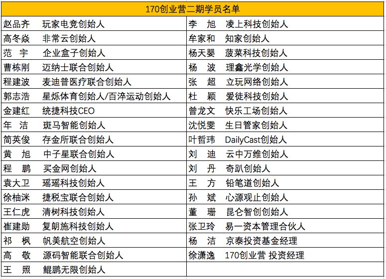4. 170创业营第三期 — 清华经管班开营时间为2018年10月。