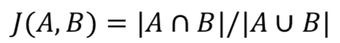 4. Jaccard 相似系数,给定两个集合 A 和 B,Jaccard 相似系数定义如下式,值越接近与 1,表明两者越相似。在文本处理中,交集就是两者中的相同词,并集就是所有非重复词的集合。