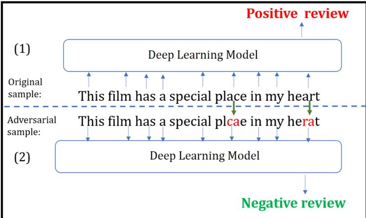[2] Wang, W., Wang, L., Tang, B., Wang, R., & Ye, A. (2019). A survey on Adversarial Attacks and Defenses in Text, 1–13. Retrieved from http://arxiv.org/abs/1902.07285