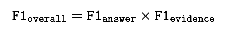 ExpMRC提供了三种评价方法,分别对答案、证据以及两者综合进行评价。F1指标用来计算正确答案(证据)和预测答案(证据)之间的重叠程度。