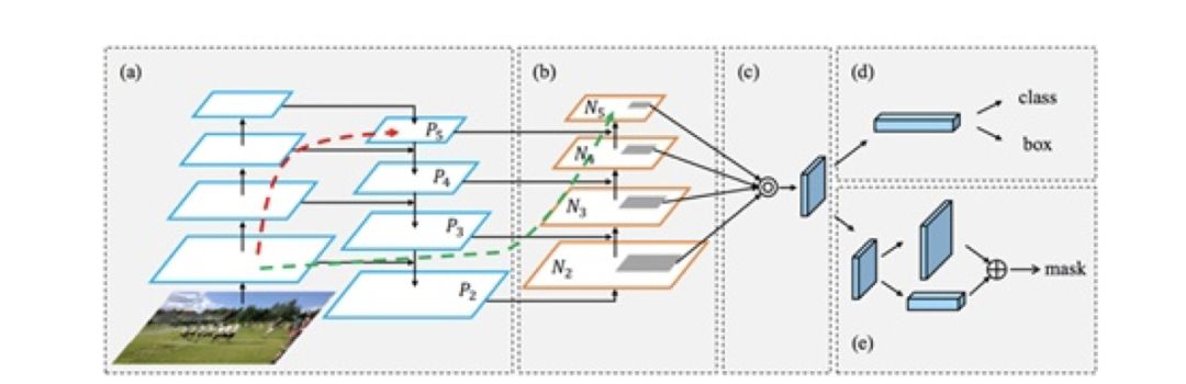 a.创建 Bottom-up 增强路径缩短信息路径,利用 Low-level 特征中存储的精确定位信号,提升特征金字塔架构。