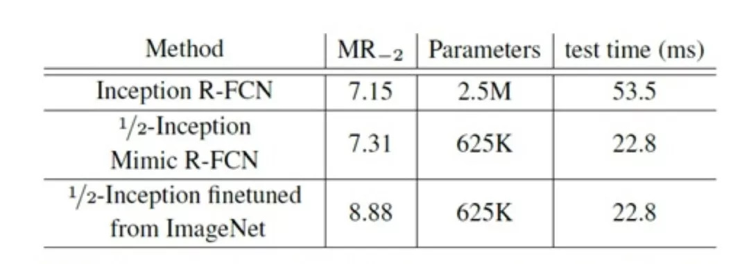 下表中 MR_-2 为 Miss Rate on False Positive Per Image,数值越小代表效果越好。其他细节可参见原论文。