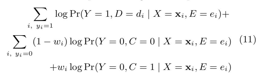 (2)解释性强,p是加权logistic regression,lamda是标准指数回归,wi是对unlabeled数据的缺失数据的表示