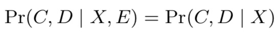 另外,论文还提到一个假设:(C,D)在给定X情况下,与E无关。即