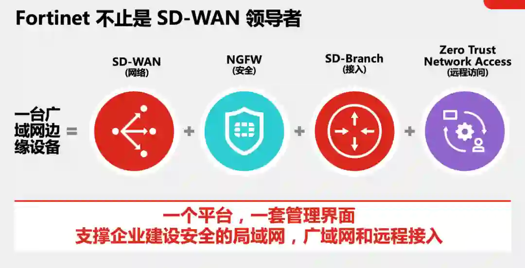 作为一个一站式的解决方案,Fortinet SD-Branch在防火墙端实现了安全与SD-WAN广域