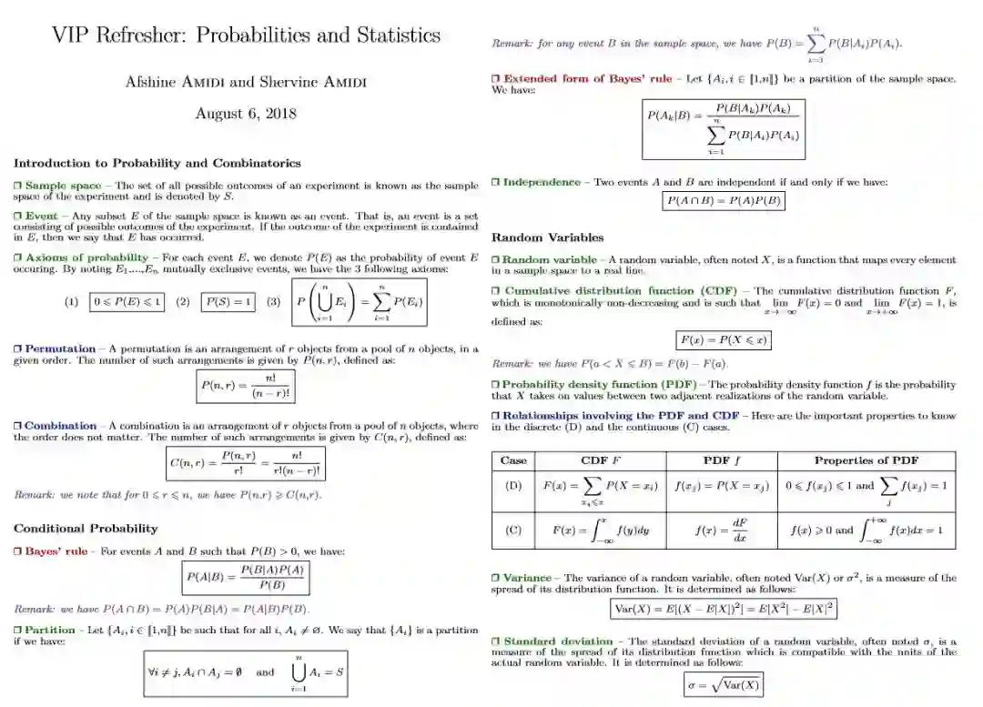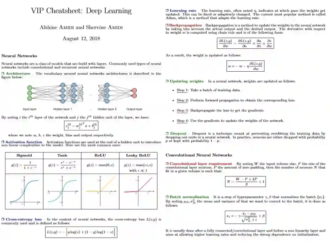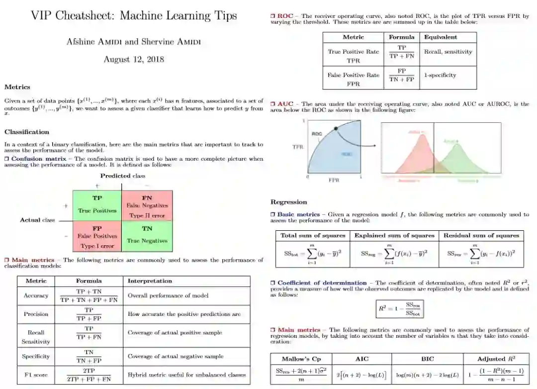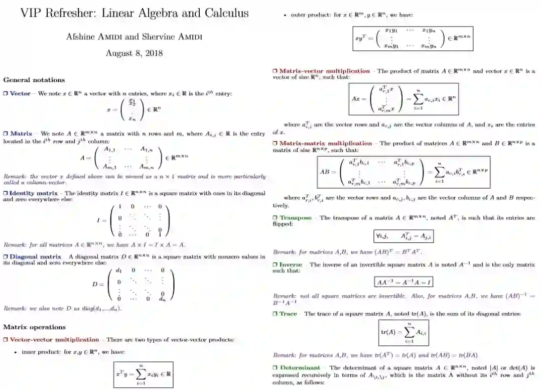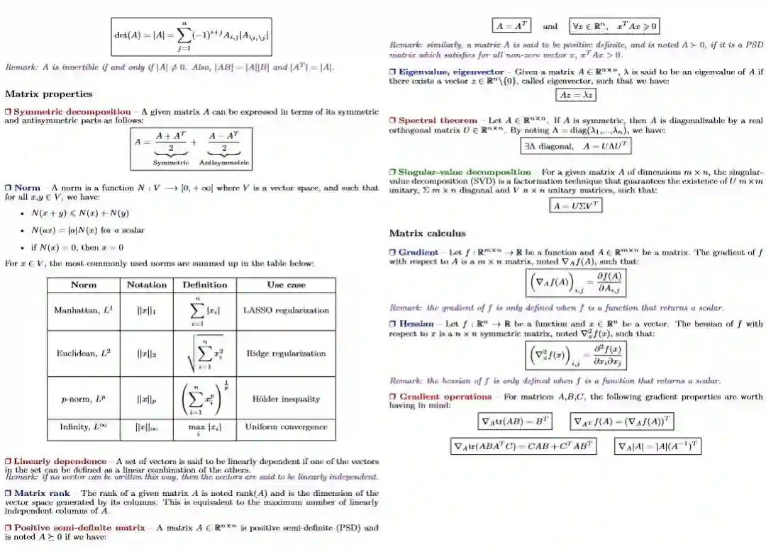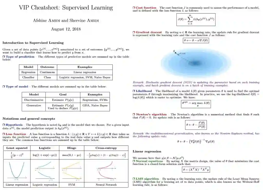 在 Github 上,afshinea 贡献了一个备忘录对经典的斯坦福 CS229 课程进行了总结,内容包括监督学习、无监督学习,以及进修所用的概率与统计、线性代数与微积分等知识。