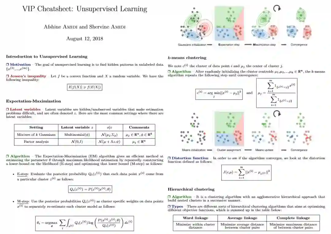 在这一部分中,该项目根据 CS 229 提供了监督学习、无监督学习、深度学习、机器学习技巧等重点内容。其中监督学习主要介绍了回归、分类和生成,无监督主要介绍了聚类与降维算法,深度学习概述了三种神经网络。