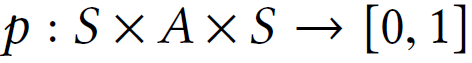 具体地,一个MDP定义为一个元组(S, A, p, R),S为状态空间,A为行动空间,为状态转换概率,