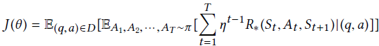 其中η为discountfactor,D为训练集,(q, a)是D中的一个问题-答案对。使用经典的策略梯度法(REINFORCE算法)优化。
