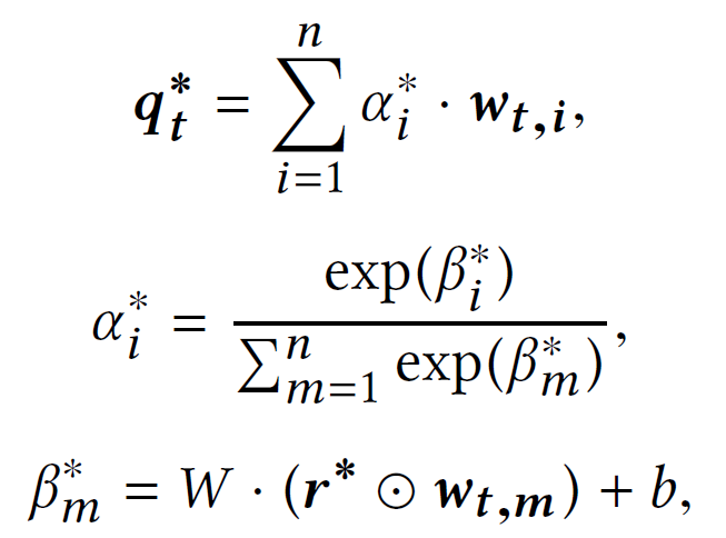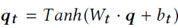 ,其中每个wi由正向和反向两个GRU分别的的d/2维输出拼接得到。在每个时间步t,q通过学习到的单层感知机转换成一个能感知到步骤的表示