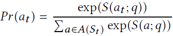 其中两个W都是学得的参数。基于相似度,选择at的概率值通过一个SoftMax层计算: