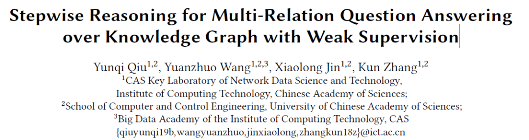 因此,对于后一类方法,最近的研究工作致力于提高多关系问题上的推理能力。然而还有以下几个挑战:(1) 时间复杂度过高,因为现有的方法对于每个问题都需要用到整个以topic entity为中心的子图,使得候选答案个数以指数级上升。(2) 语义信息太复杂,因为多关系问题中的每一个部分都对三元组选择有各自的影响,故需要在不同步骤里关注问题中的不同部分,而许多现有的方法没有对多关系问题作更进一步的分析,因此表现很差。(3) 需要使用弱监督来训练,因为一步步地分析到底如何回答一个多关系问题是不现实的,这需要大量的数据标注。实际的标注只有最终的答案,因此是弱监督的。有些工作使用外部知识(如Wikipediafree text)来丰富分布式表示,但这种操作不适用于没有外部知识的某些特定领域。