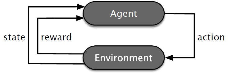 为奖励函数。在每个时间步t,agent观察环境的状态St ∈ S,然后选择一个行动At ∈ A(St)。作为结果,环境转换到一个新的状态St+1,概率为