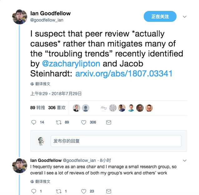 同时,Ian Goodfellow 的观点也得到了 Zachy Lipton 的赞同,表示同行评审机制的退化也应该被列在在文章的「原因」章节之下。