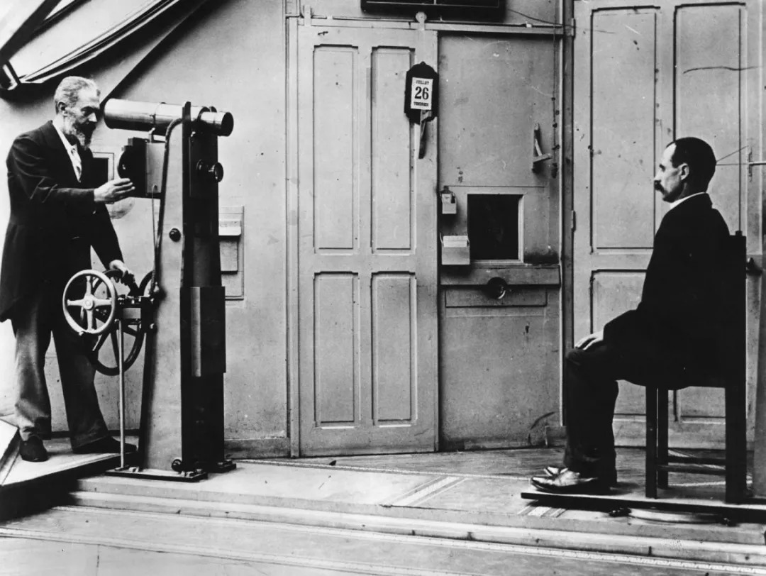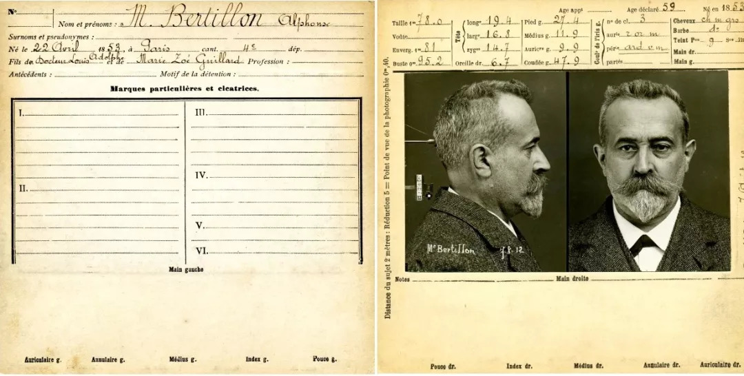 最开始拍摄这种类型照片的人,是1853年出生于法国巴黎的 Alphonse Bertillon(阿方斯·贝迪永),他既是一名警察、犯罪学家又是一位生物统计学家。