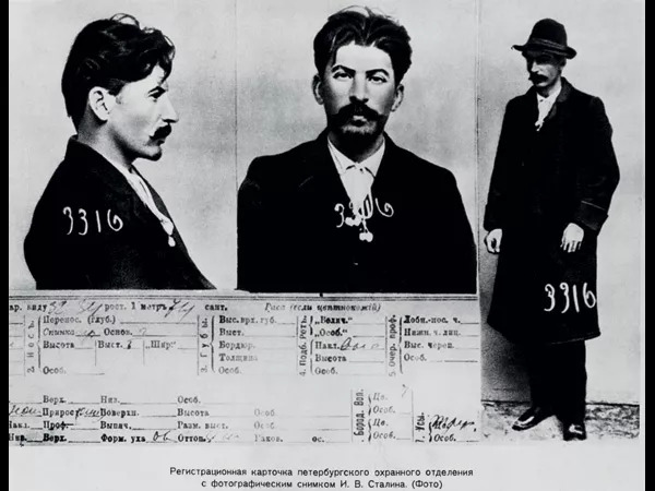 尚未攀上权力顶峰的约瑟夫·斯大林在圣彼得堡警方的登记卡。这张照片中,全身照同时也出现在了入案卡片上。