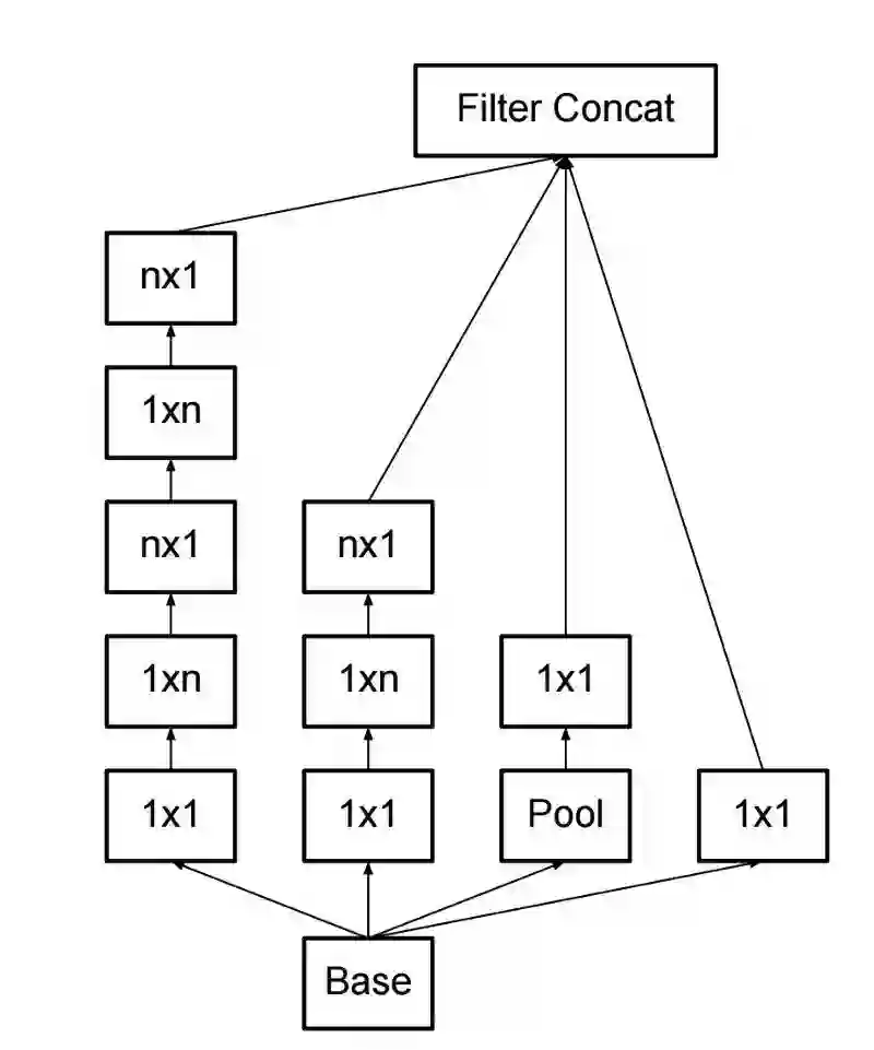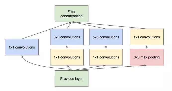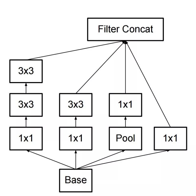 2015年12月,他们发布了Inception模块的新版本及相应的架构。这篇论文更好地解释了原始的GoogLeNet架构,给出了更多设计选择的细节。原本的想法如下: