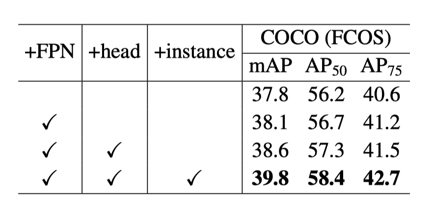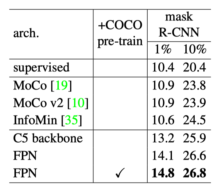 图13:将带有 FPN 结构的 FCOS 与 PixPro 相结合,让 PixPro 有利于实现与下游检测任务更一致的自监督预训练