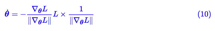 这里就是 dθ/dt,⟨⋅⟩ 表示普通的内积。我们希望 L 越小越好,自然是希望上式右端为负数,而且绝对值越大越好。假如固定