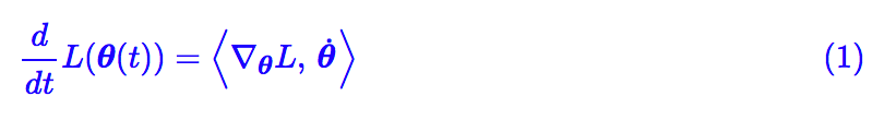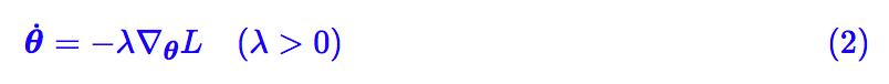 好,进入正题。假设在优化过程中参数 θ 按照某种轨迹 θ(t) 进行变化,那么 L(θ) 也变成了 t 的函数 L(θ(t))。注意这里的 t 不是真实的时间,它只是用来描述变化的参数,相当于迭代次数。