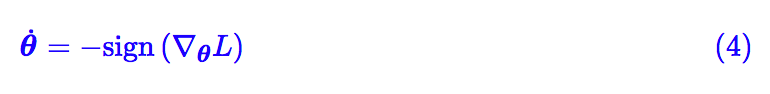 注意 ∇θL 是一个向量,sign(∇θL) 指的是对每一个分量取符号函数,得到一个元素是 -1 或 0 或 1 的向量。这样一来式 (1) 变为: