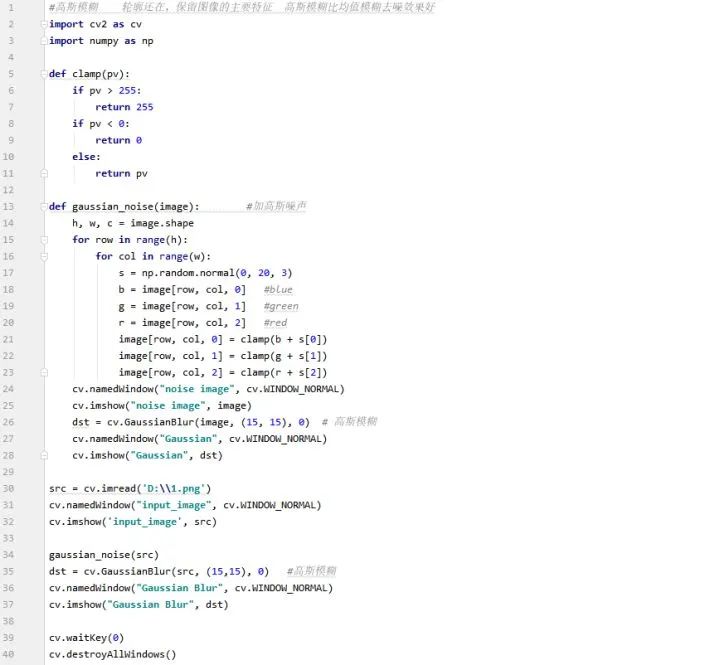 在OpenCV中,我们使用 cv.GaussianBlur()这个函数来调用高斯滤波。