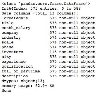 可以看到,经过初步清理后,数据集中有效变量为13个,数据记录575条。除了投资人这一项之外,其他各字段的数据完整度非常好,几乎没有缺失值。这对于后面的分析来说是个大大的好消息。