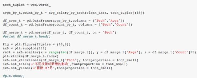 我对需求频率最高的前15个技能进行统计计算,得出每一个技能对应的平均薪酬水平,如上图。点的大小代表该技能需求量的多少。