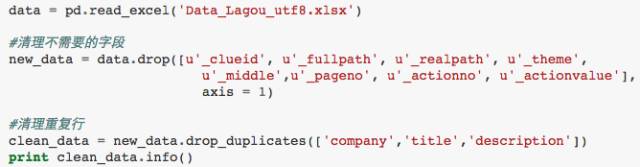 本项目所使用的数据集全部来自拉勾网,是通过集搜客这一网络爬虫工具来爬取的。集搜客是一款简洁易用且功能强大的网络爬虫产品,通过鼠标点选和简单的命令操作即可实现爬虫的定制和运行,这里也推荐一下。之所以选择拉勾网作为本项目的数据源,主要是因为相对于其他招聘网站,拉钩网上的岗位信息非常完整、整洁,极少存在信息的缺漏。并且几乎所有展现出来的信息都是非常规范化的,极大的减少了前期数据清理和数据整理的工作量。(笔者毕竟是工作之余完成,时间有限,能省则省)本次爬取信息的时候,主要获得了以下信息:
