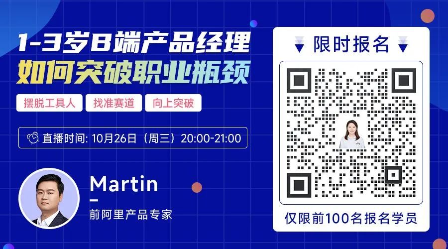 10月26日(周三)晚8点,前阿里产品专家将在线拆解3个经典案例,教你摆脱产品工具人&找准赛道&向上生长,突破职业瓶颈~