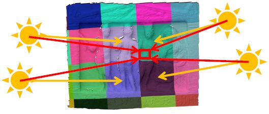 为此,我们提出了基于Shape-from-Shading(SfS)技术的结合处表面重建方法,并且利用了重建场景的子体积中空间变化球谐函数(SVSH)的估计。