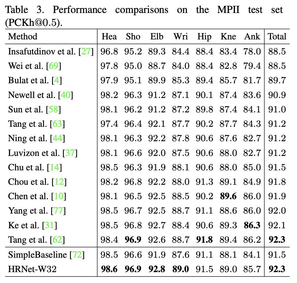 除此之外,在 MPII 姿势估计数据集上的结果如下表: