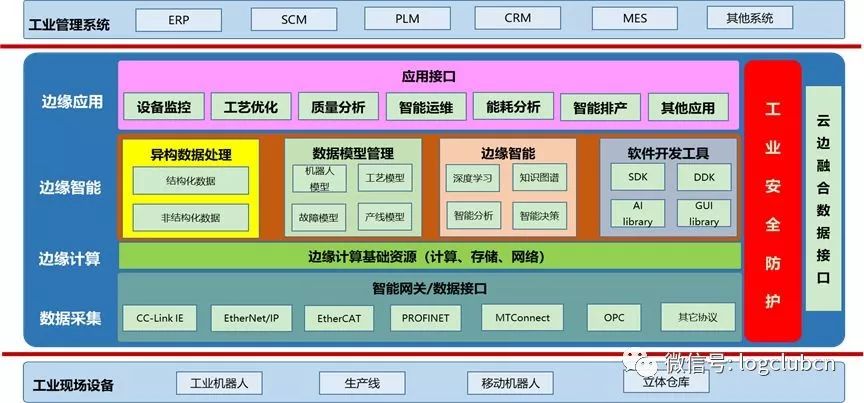 利用网络计算资源,将知识镜像建模和知识挖掘,在网络层中形成实体的镜像对称模型和大数据环境,通过对实体运行历史数据中的关联性和逻辑性进行挖掘,产生能够支持决策的制造知识,重点是将对数据的洞察变为支持决策的知识,形成知识库。边缘计算设备作为边缘设备的输出端,需要较高的实时性与扩展性。面对复杂的 IT 与 OT 设备混连的环境,我们需要有按照优先级处理事件的方案或者协议,比如TSN。而作为云端的输入端则需要较高的稳定性。我们需要对边缘计算设备做冗余以避免整个生产线失控的场景,比如分布式架构。而其自身的边缘智能则需要较强的浮点运算能力以进行智能分析与决策,比如使用专用的加速芯片。