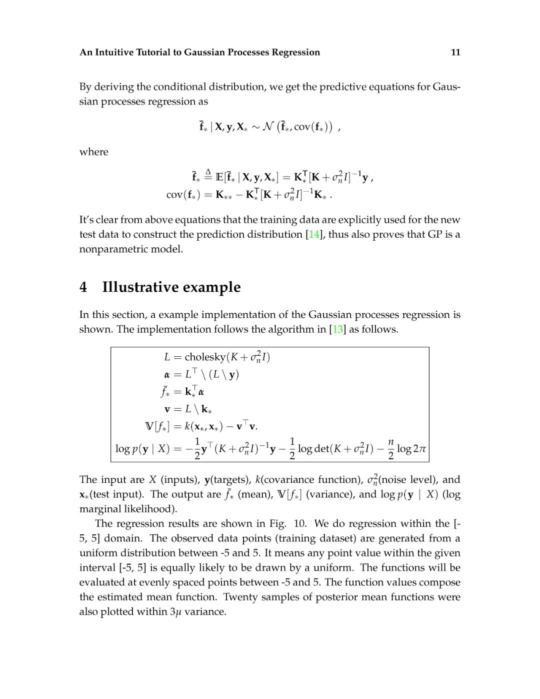 这篇介绍旨在为读者提供对高斯过程回归的直观理解。高斯过程回归(GPR)模型由于其表示法的灵活性和预测的固有不确定性,在机器学习应用中得到了广泛的应用。本文首先解释了高斯过程所建立的数学基础,包括多元正态分布、核、非参数模型、联合概率和条件概率。然后,通过显示不必要的数学推导步骤和缺少关键的结论性结果的平衡,以可访问的方式描述高斯过程回归。给出了一个标准高斯过程回归算法的说明性实现。除了标准的高斯过程回归之外,现有的软件包实现了最先进的高斯过程算法。最后,给出了更高级的高斯过程回归模型。这篇论文的写作方式通俗易懂,理工科本科学生理解文章内容不会有困难。