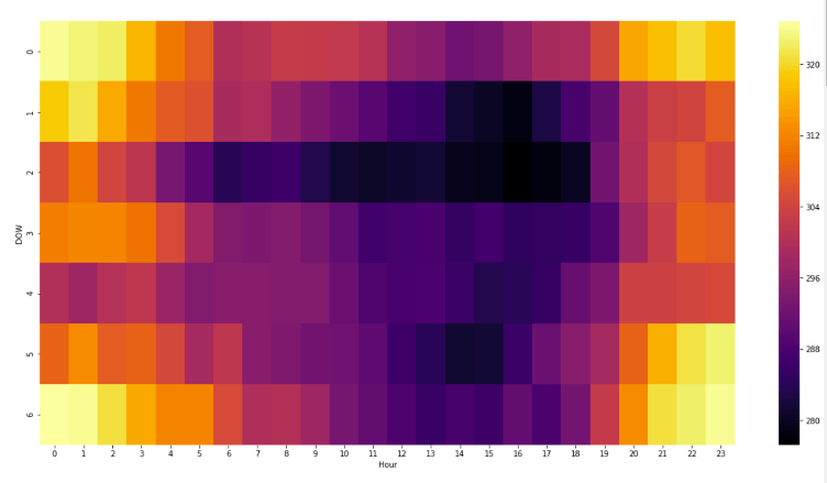 之前我参加过DataHack的一个竞赛,内容是用数据集预测电力消耗。通过热图和探索性数据分析,我绘制了以下这幅图: