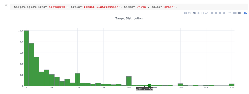如上图所示,这里的数据高度偏斜,如果我们把目标变量转成log(1+目标)格式,那么它的分布就接近高斯分布了。