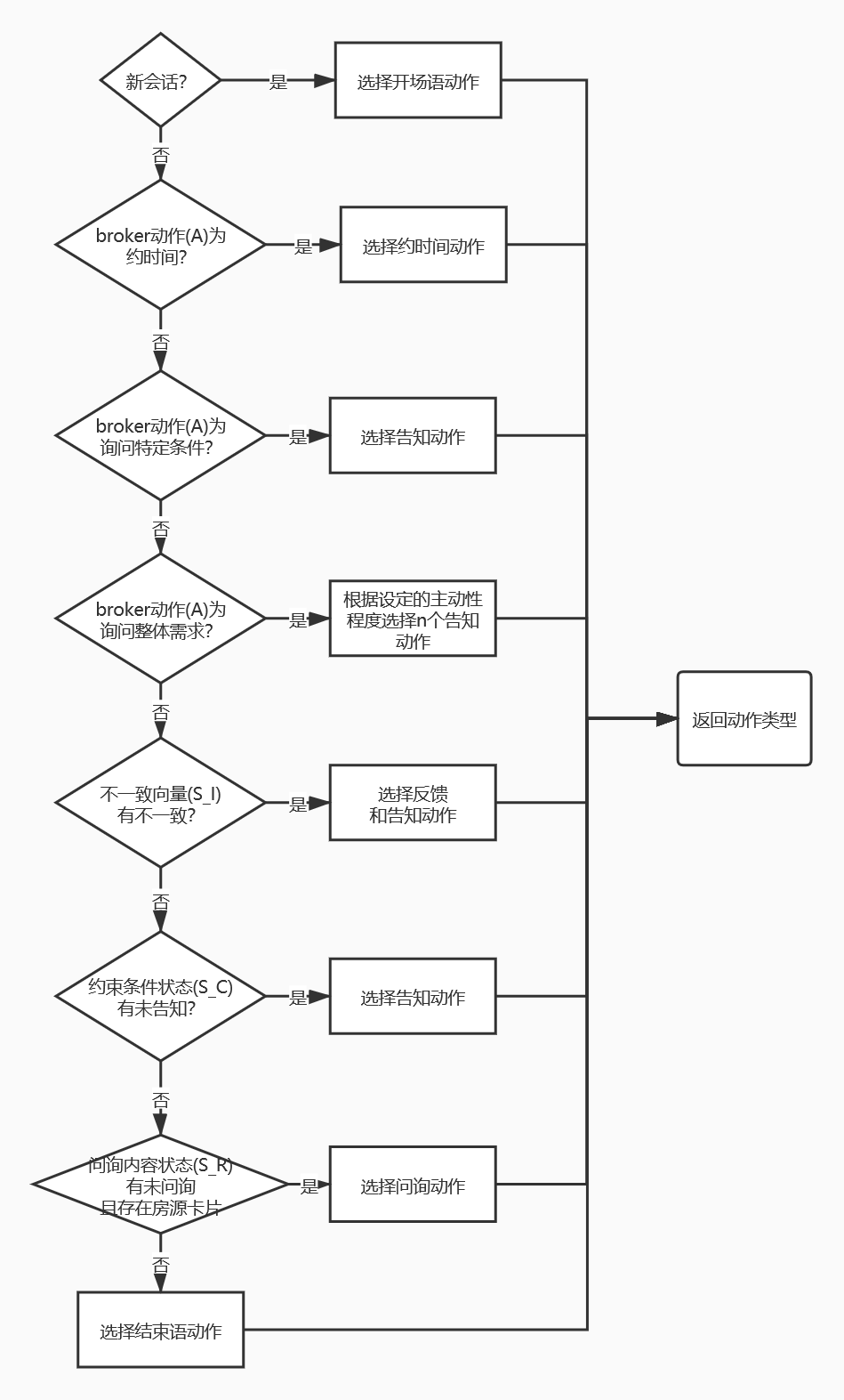 每一轮会话,模型会根据更新后的状态进行动作采样,根据经验,我们设定状态优先级顺序为:A>S_I>S_C>S_R。