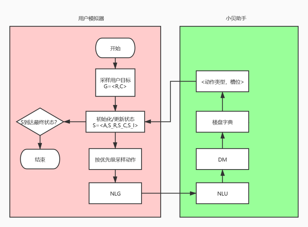 小贝助手的动作类型有多种,比如回答详情、推荐房源、询问需求、约带看等,每次修改动作策略之后都需要进行测试,以评估时机或者答案的准确性,这时如果引入模拟用户进行仿真测试,将会非常高效和可信。