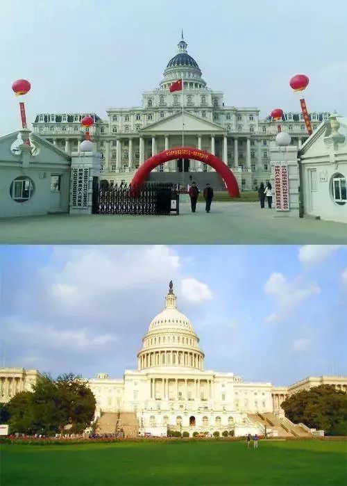 安徽某区政府办公大楼(上)与美国国会大厦(下)