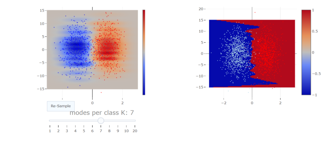 这给了我们一个插值解——在每个训练点,标签类有无限密度,所以它被归类为属于这个类。