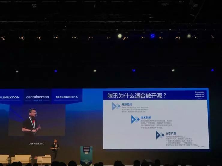 雷锋网6月26日消息,由The Linux Foundation主办的旗舰年度开源盛会LinuxCon + ContainerCon + CloudOpen(LC3)进入第二天的议程,腾讯刚刚成为Linux基金会的白金会员,腾讯移动互联网事业群总经理刘昕以腾讯开源顾问和Linux基金会董事身份发表题为《如何自下而上在腾讯做开源》的演讲。